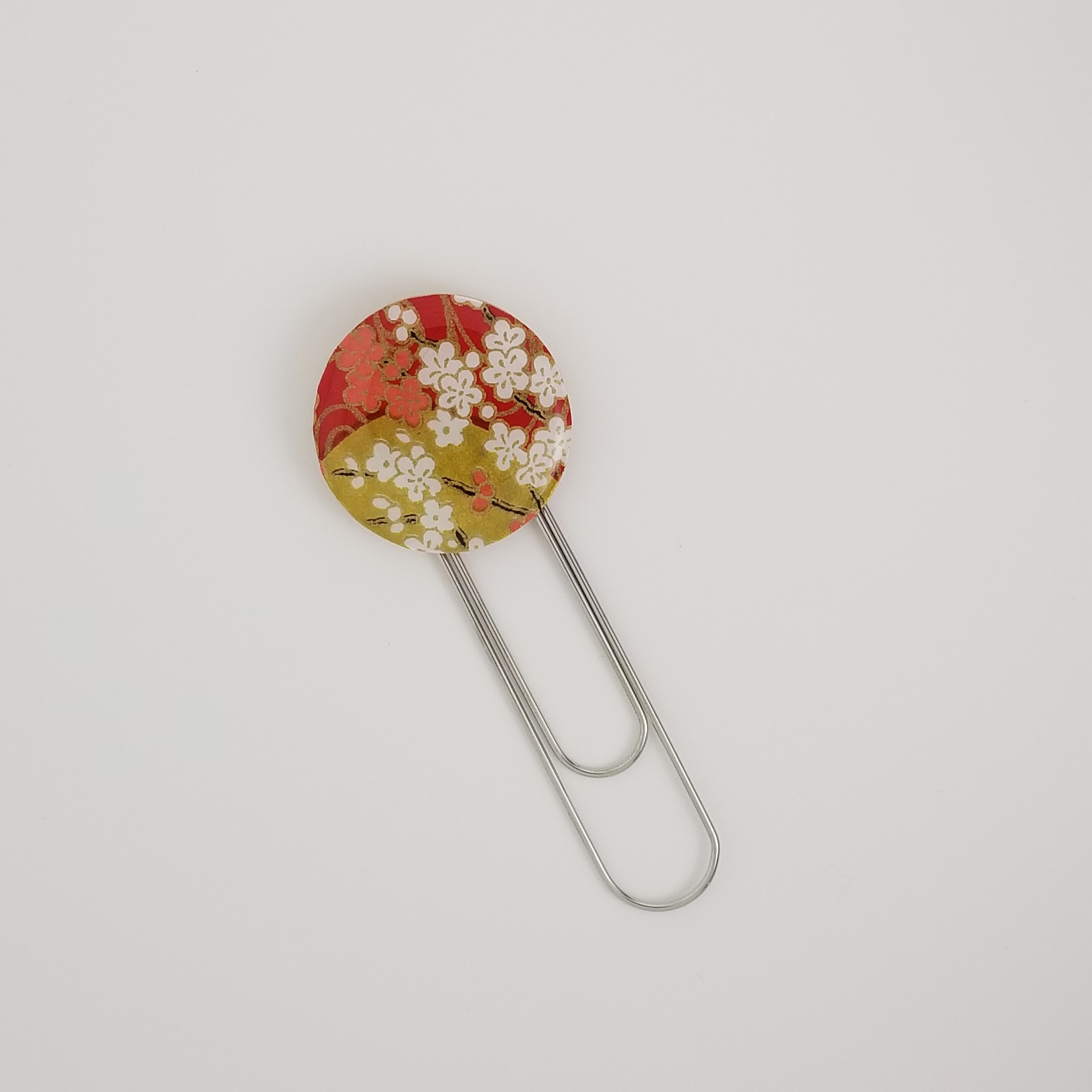 Chiyogami Coral and White Plum Blossoms on Gold and Red Bookmarks