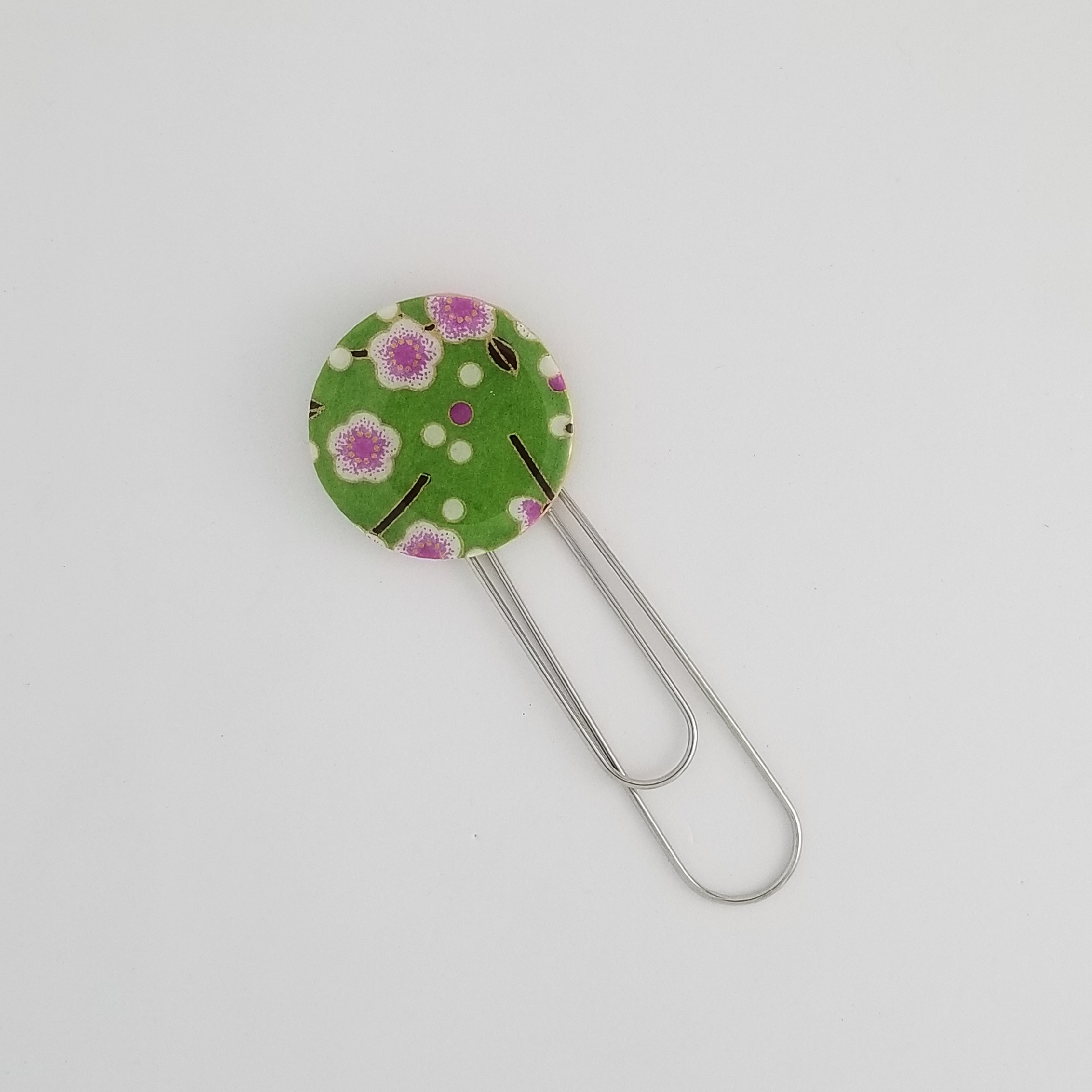 Chiyogami Green with Pink Plum Blossoms Bookmark