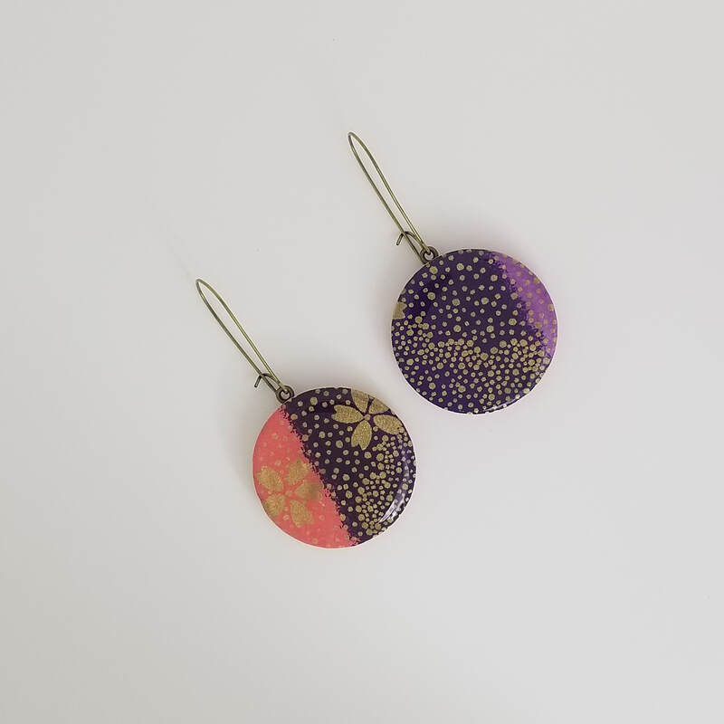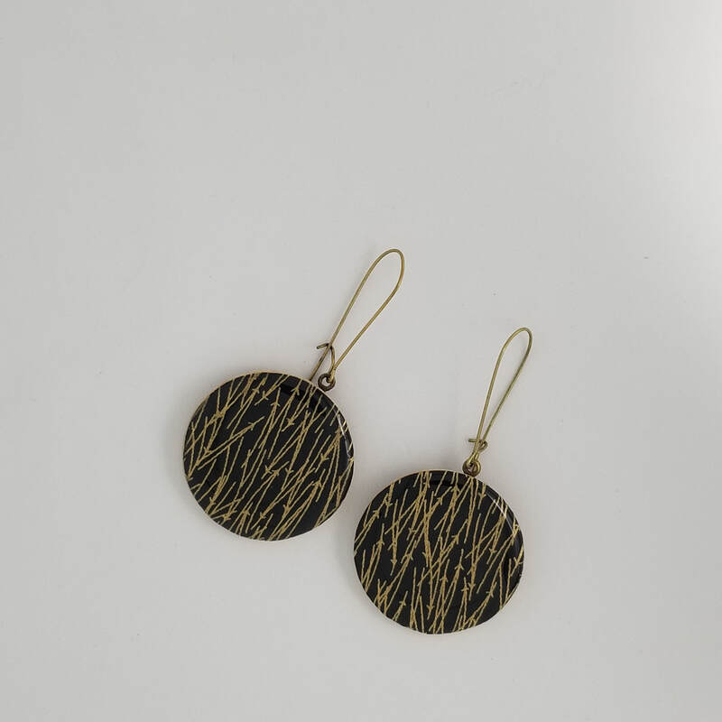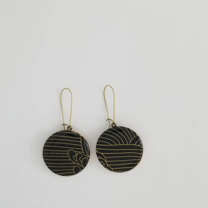Chiyogami Black with Gold Brushstroke Large Earrings