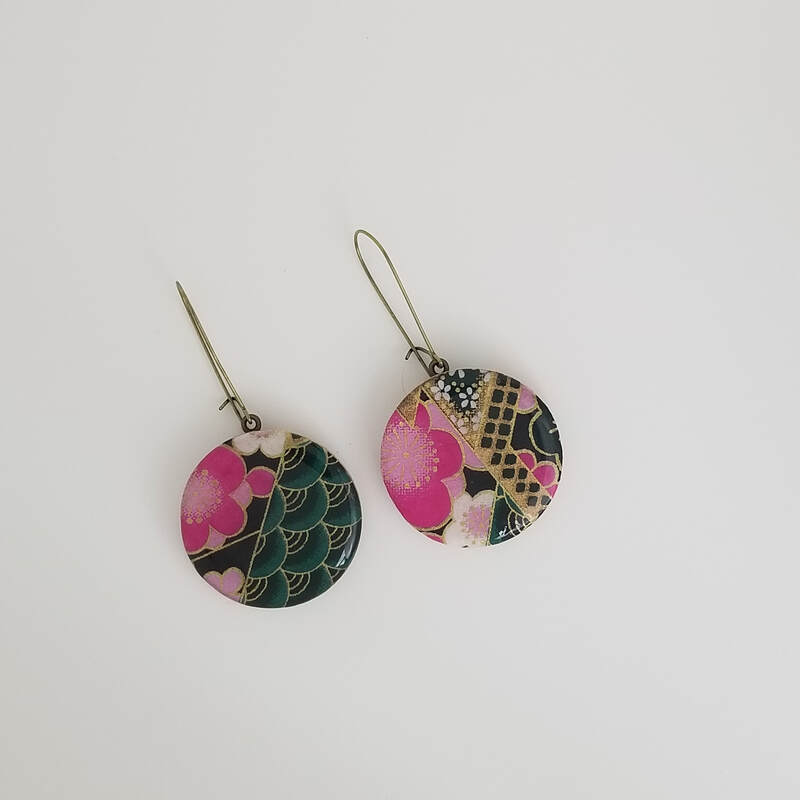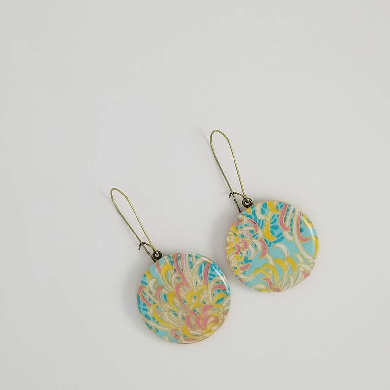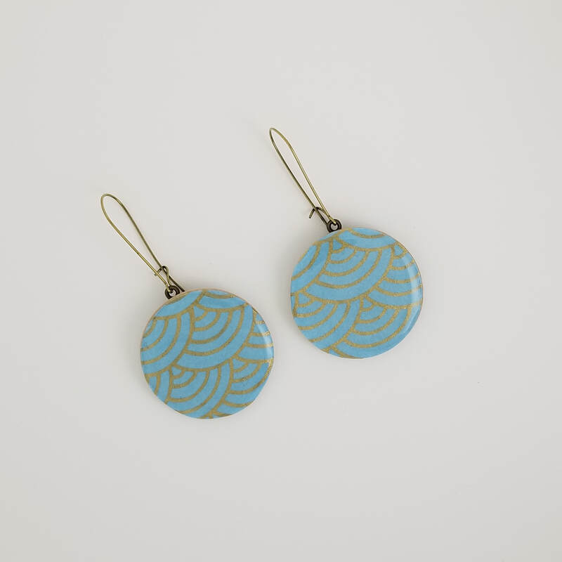 Chiyogami Aqua Segaiha Large Dangle Earrings