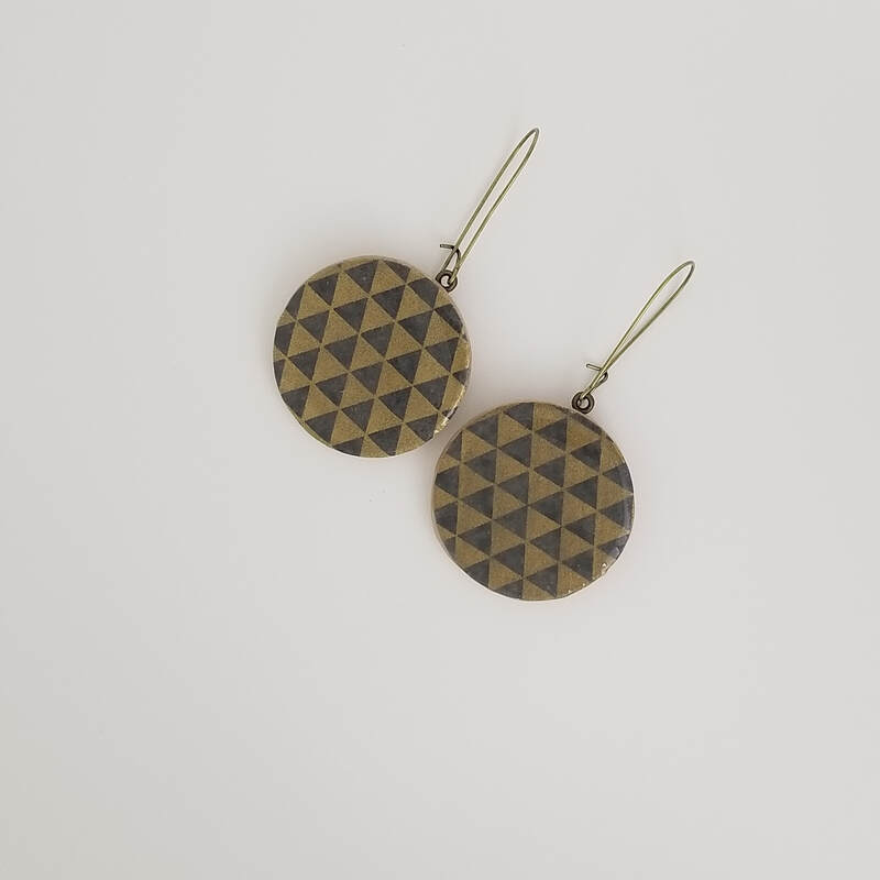 073 Gold and Gray Uroko Large Dangle Earrings