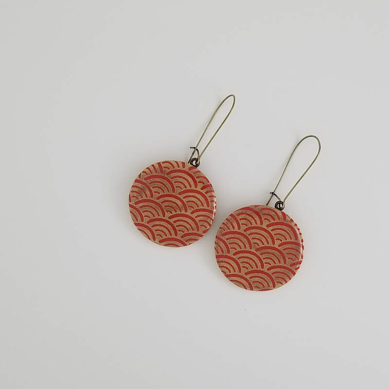 083 Red and Gold Seigaiha Large Dangle Earrings