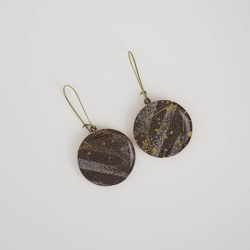 Chiyogami Gray Sayagata Large Dangle Earrings